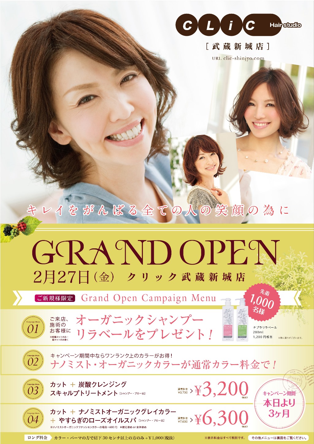 美容室クリック武蔵新城店GRANDOPENにあたってキャンペーン実施♪